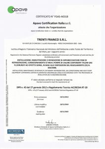 • Certificazione per servizi di installazione, manutenzione o riparazione di apparecchiature fisse di refrigerazione, condizionamento d'aria e pompe di calore contenenti taluni gas fluoranti ad effetto serra, in base alle disposizioni del regolamento (CE) N. 303/2008